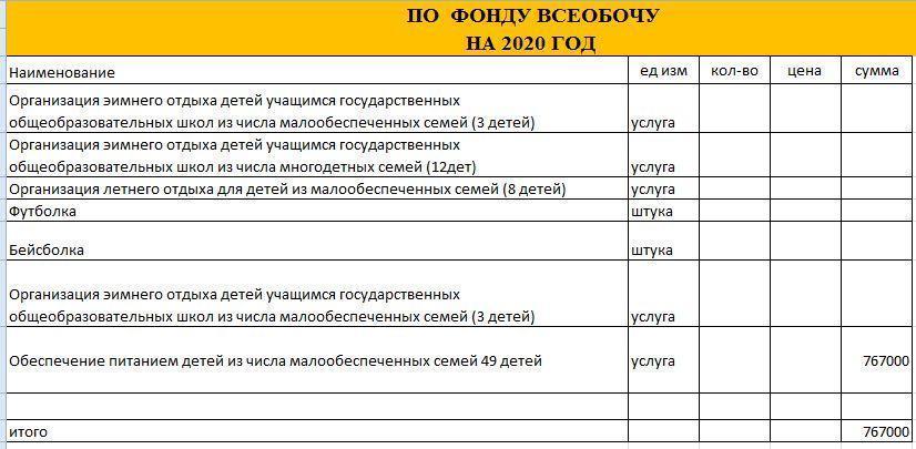 по фонду всеобучу на 2020г